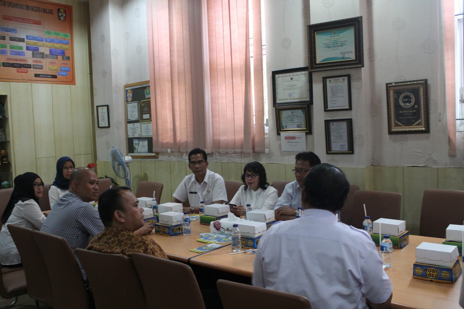 MALANG – Rabu, 21 Agustus 2019, Kepala Sekolah dan para Waka mengadakan pertemuan bersama Kementrian Koordinator, dengan maksud pengenalan SMKN 4 Malang kepada bapak ibu Kemenko. Pertemuan tersebut bertempat di ruang kepala sekolah dan dilaksanakan dengan lancar tanpa ada kendala.