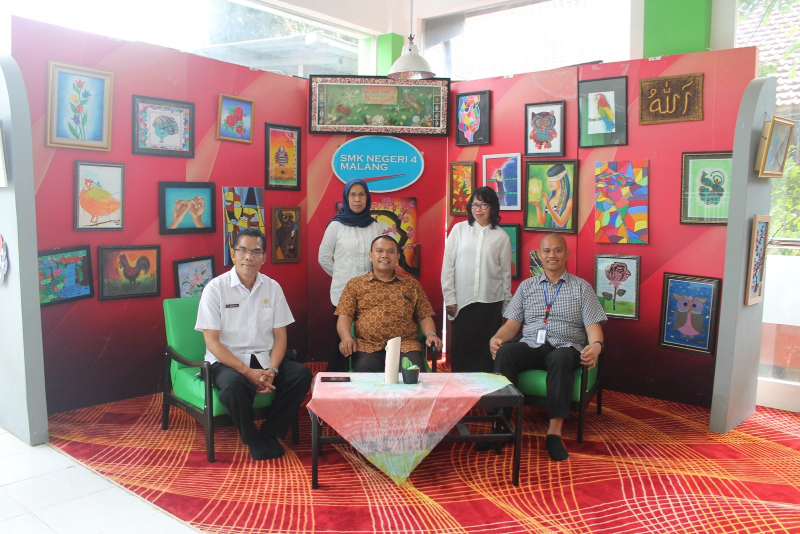 Selesai berbincang, bapak ibu kemenko diajak untuk melihat berbagai alat yang digunakan dalam lab grafika, tidak hanya itu mereka juga diajak langsung untuk melihat pembelajaran yang berada di lab animasi. Selesai dari animasi bapak ibu kemenko beranjak ke Perpustakaan dan Techno Park SMKN 4 Malang, selesai melihat-lihat acara ditutup dengan sesi foto bersama.