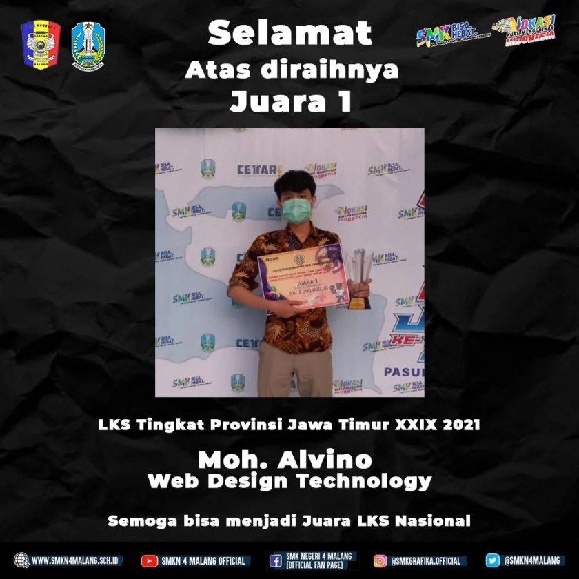 Selamat atas kemenangannya dibidang lomba Web Design Technology tingkat Provinsi Jawa Timur XXIX 2021