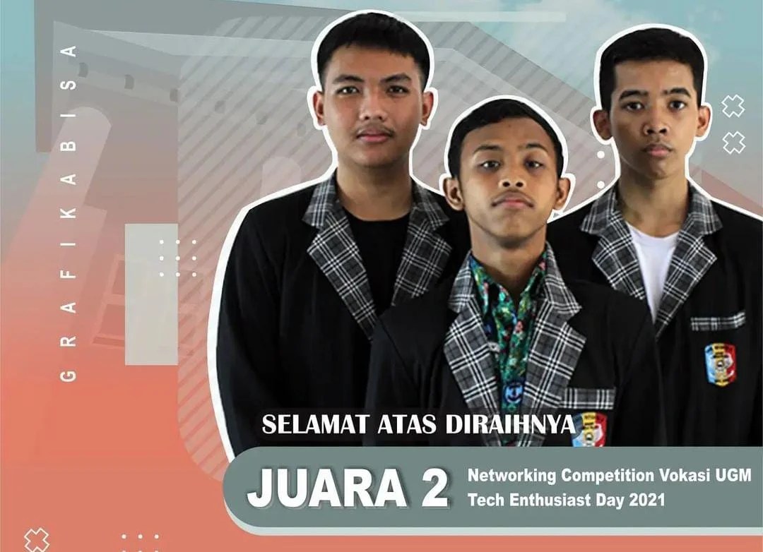 Ucapan selamat kepada team NOC SMK Negeri 4 Malang menjadi pemenang Networking telah menjadi juara 2 dalam salah satu cabang lomba yang ada pada Tech Enthusiast Day 2021 yang diselenggarakan oleh Departemen Teknik Elektro dan Informatika Sekolah Vokasi Universitas Gadjah Mada yang diumumkan pada tanggal 4 Desember 2021.